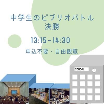 - 「中学生のビブリオバトル」の出場者受付は終了しました。決勝観戦は予約不要・自由来場です。皆様のご来場をお待ちしております。【2025年11月8日更新】